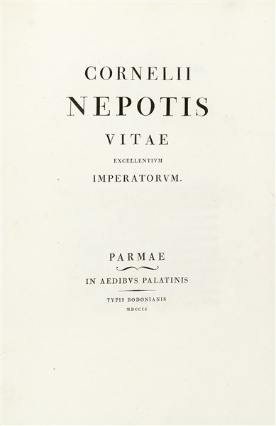 CORNELIO NEPOTE (110-25 a.C.) - Vitae excellentium Imperatorum. Parma: Giambattista Bodoni, 1799.