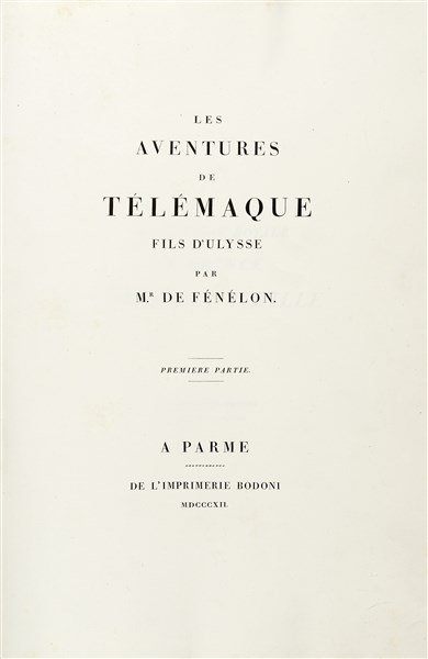 FENELON, François de Salignac (1651-1715) - Les aventures de Télémaque. Parma: Giambattista Bodoni, 1812.