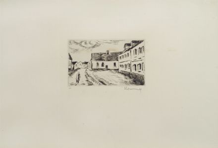 Maurice De Vlaminck (Parigi, 1876 - Rueil-la-Gadelière, 1958) Aspect de la Grand'Rue, 1927 Acquaforte, mm. 100x162 (lastra), mm. 324x489 (foglio); es.47 Firma in basso a destra.Tiratura in basso a sinistra. In basso a destra timbro a secco Galerie Des Peintdes-Craveurs, Paris. Bibliografia: K. von Walterskirchen - Maurice de Vlaminck Verzeichnis des Graphischen Werkes Benteli Verlag - Berlino 1974 - n° 124 pag. 109