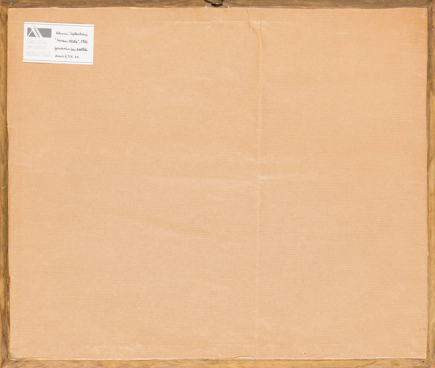Etichetta della Galleria Alto Garda (TN) al retro del cartone protettivo