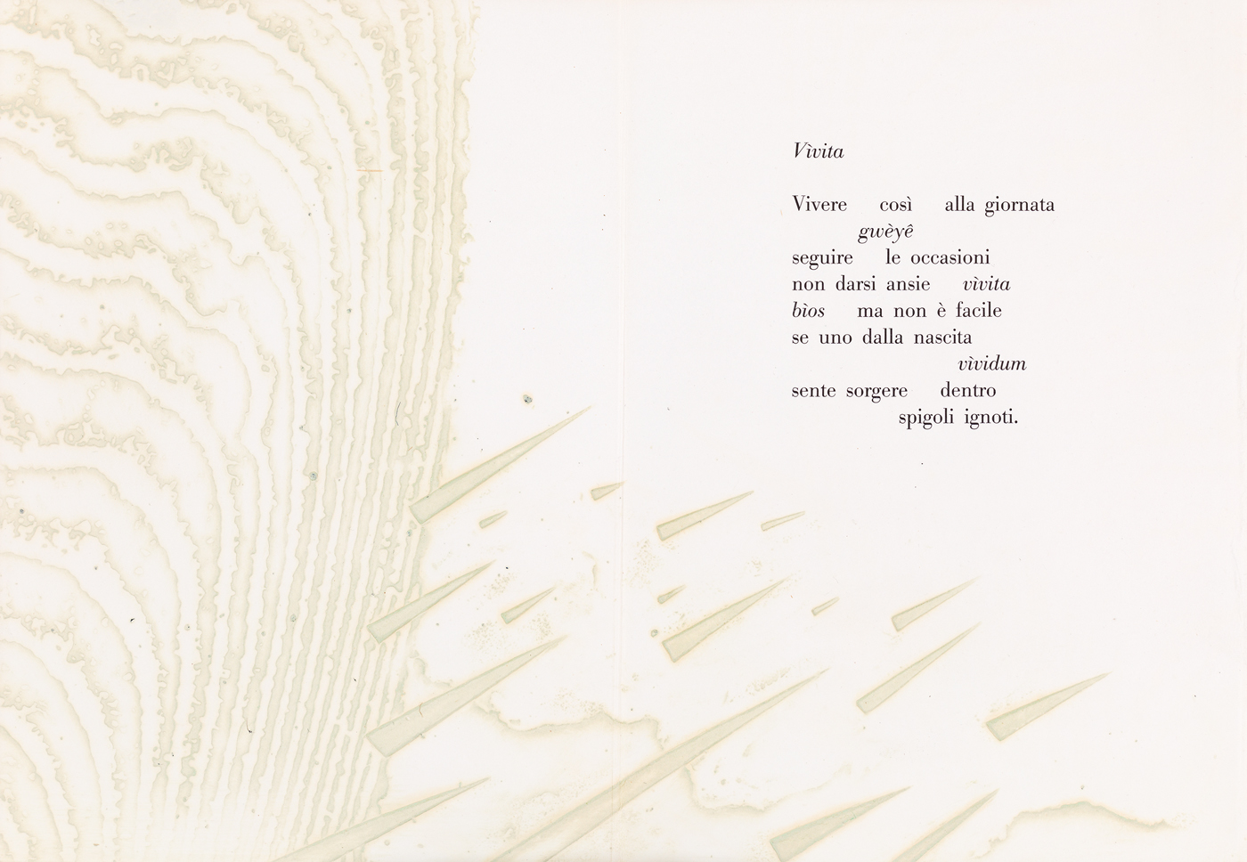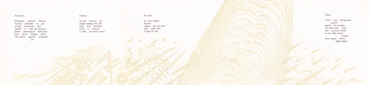 Leporello con poesie di Guido Ballo e calcografie di Arnaldo Pomodoro su carta Fabriano