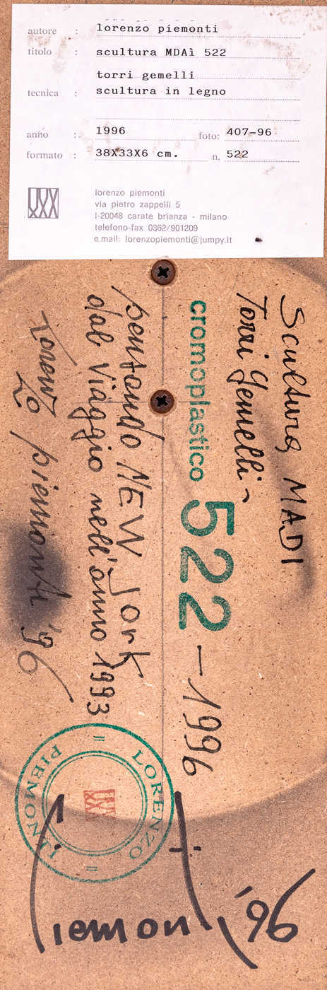 LORENZO PIEMONTI (1935-2015) - Scultura Madì 522 (Torri Gemelli), 1996