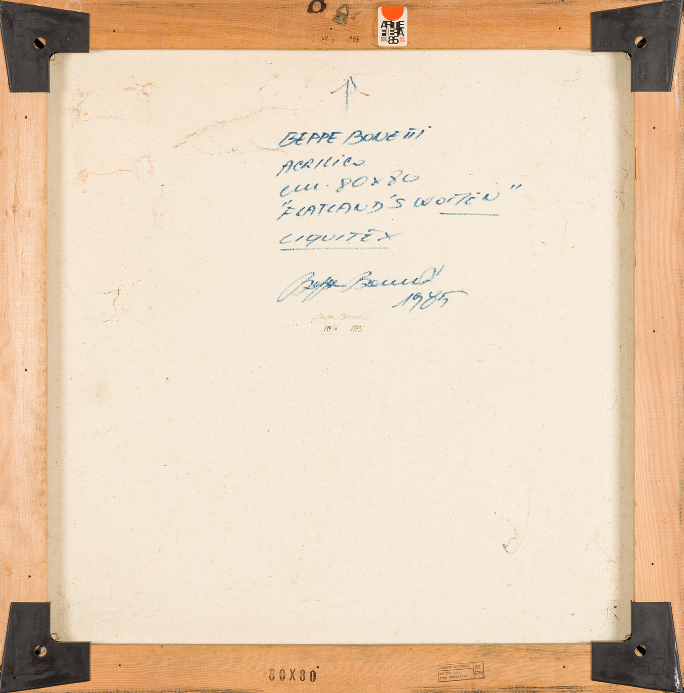 Etichetta Artefiera Bologna 1985 al retro