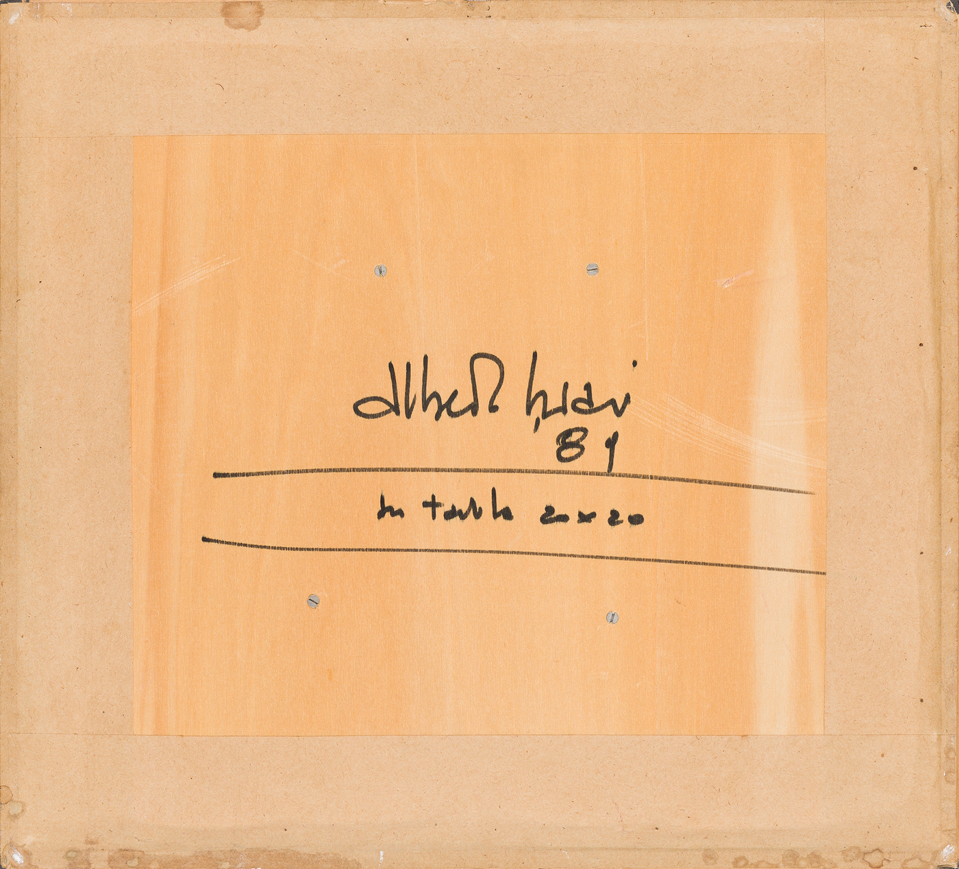 Firma, datazione, tecnica e misure al retro della tavola protettiva