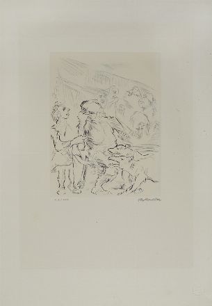 Oskar Kokoschka (Pöchlarn, 1886 - Villeneuve, 1980) Dionysos und Xanthias Puntasecca, mm. 258x198 (lastra), mm. 567x394 (foglio); es. XLI/LXX LXX. Firma in basso a destra. Tiratura in basso a sinistra. In basso a destra timbro a secco "Ars Librorum", Francoforte.