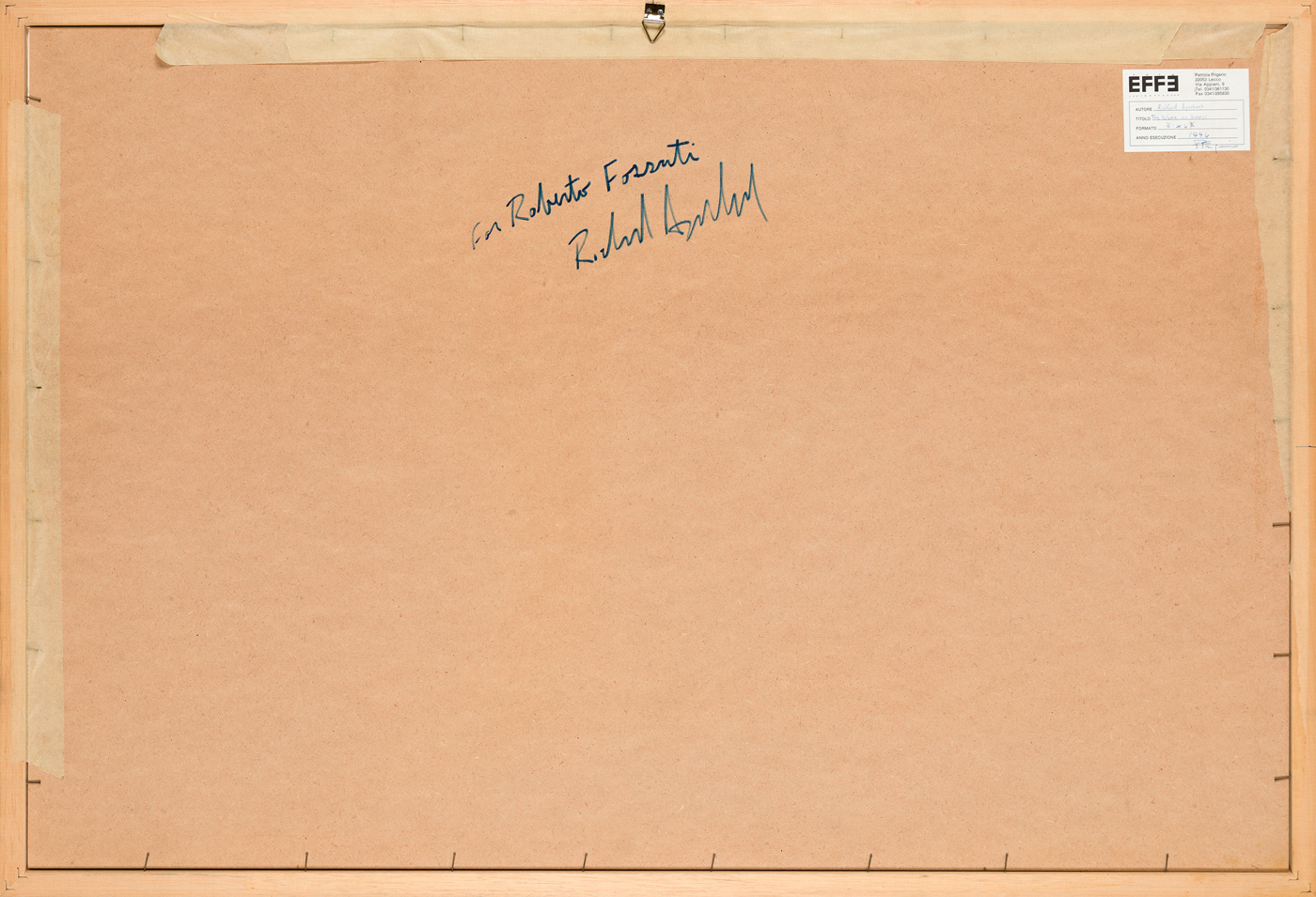 Etichetta della Galleria Patrizia Frigerio (LC) al retro della tavola protettiva