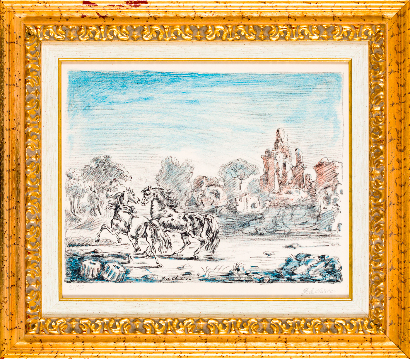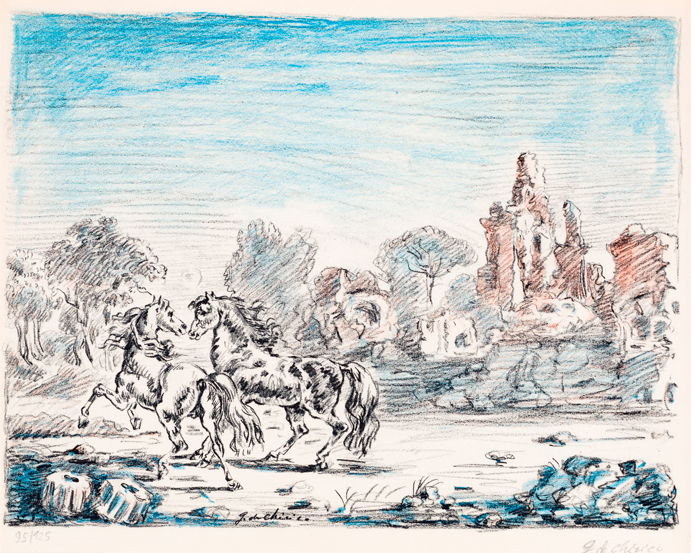 GIORGIO DE CHIRICO (1888-1978) - Cavalli e rovine, 1954