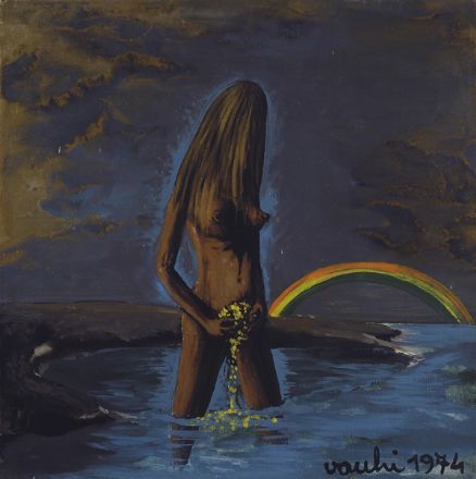 Sergio Vacchi (Castenaso, 1925) Figura solo per Lucia, 1974 Olio su tela, cm....