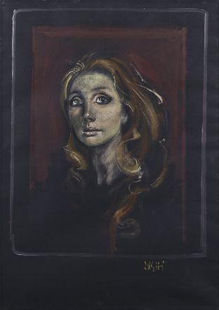 Alberto Sughi (Cesena, 1928 - Roma, 2012) Volto femminile Tecnica mista su carta riportata su tela, cm. 70x50 Firma in basso a destra.