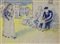 Aligi Sassu (Milano, 1912 - 2000) Figure in paese Acquerello su carta, cm. 24,2x34,5 Firma in basso a destra. Sul verso: timbri Archivio Fotografico Mondadori; a penna: "Aligi Sassu/Disegno per «La tomba di Lazzaro» di Ignazio Silone (Una manciata di more)".