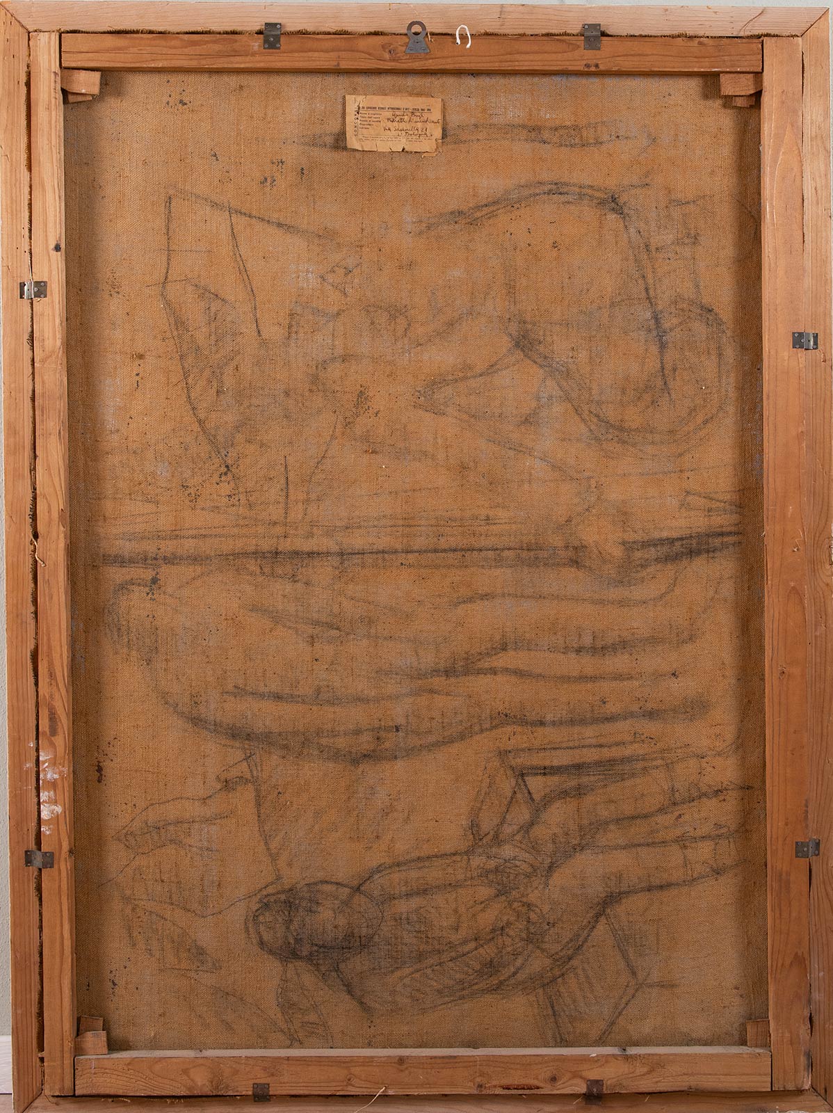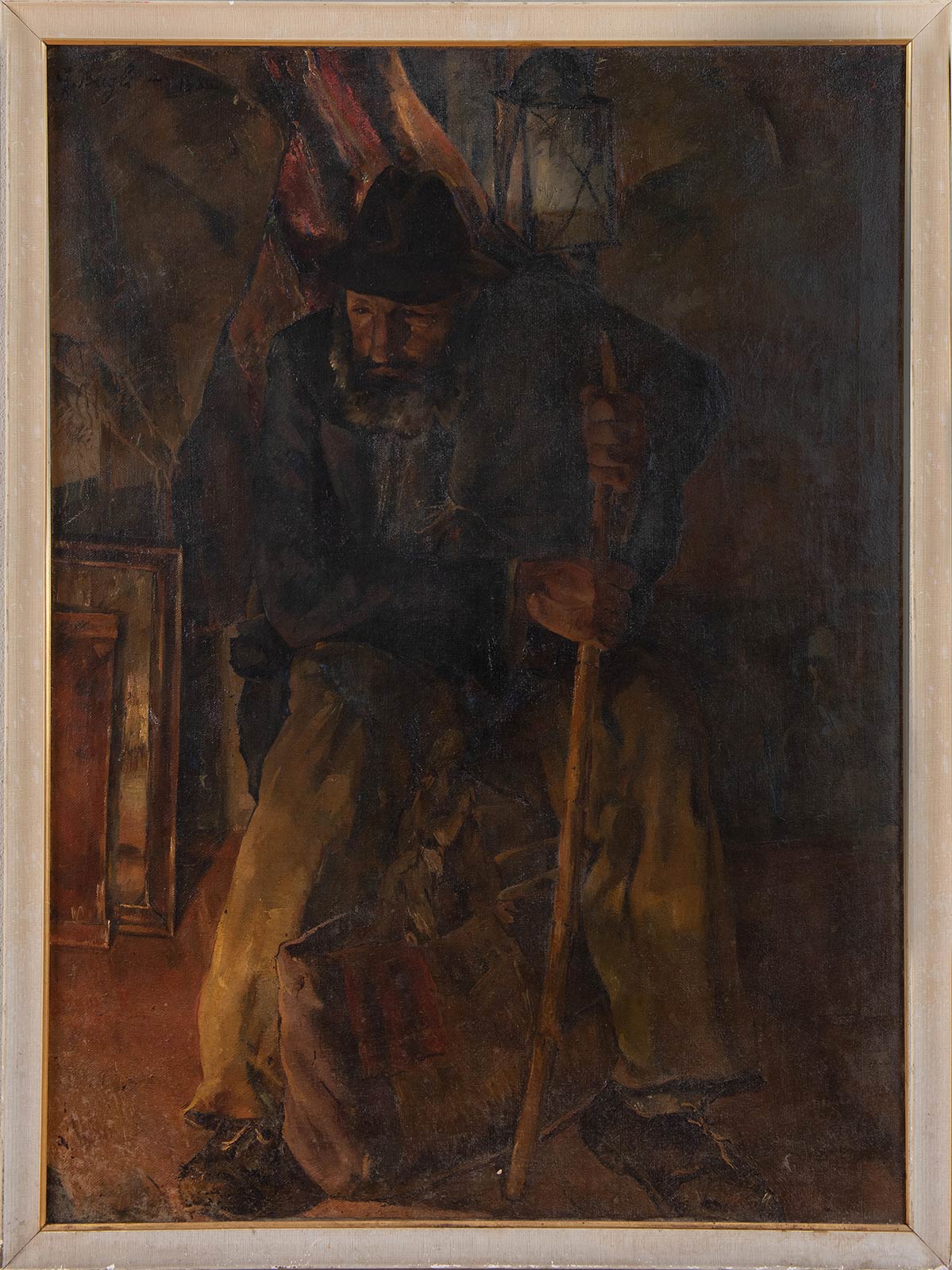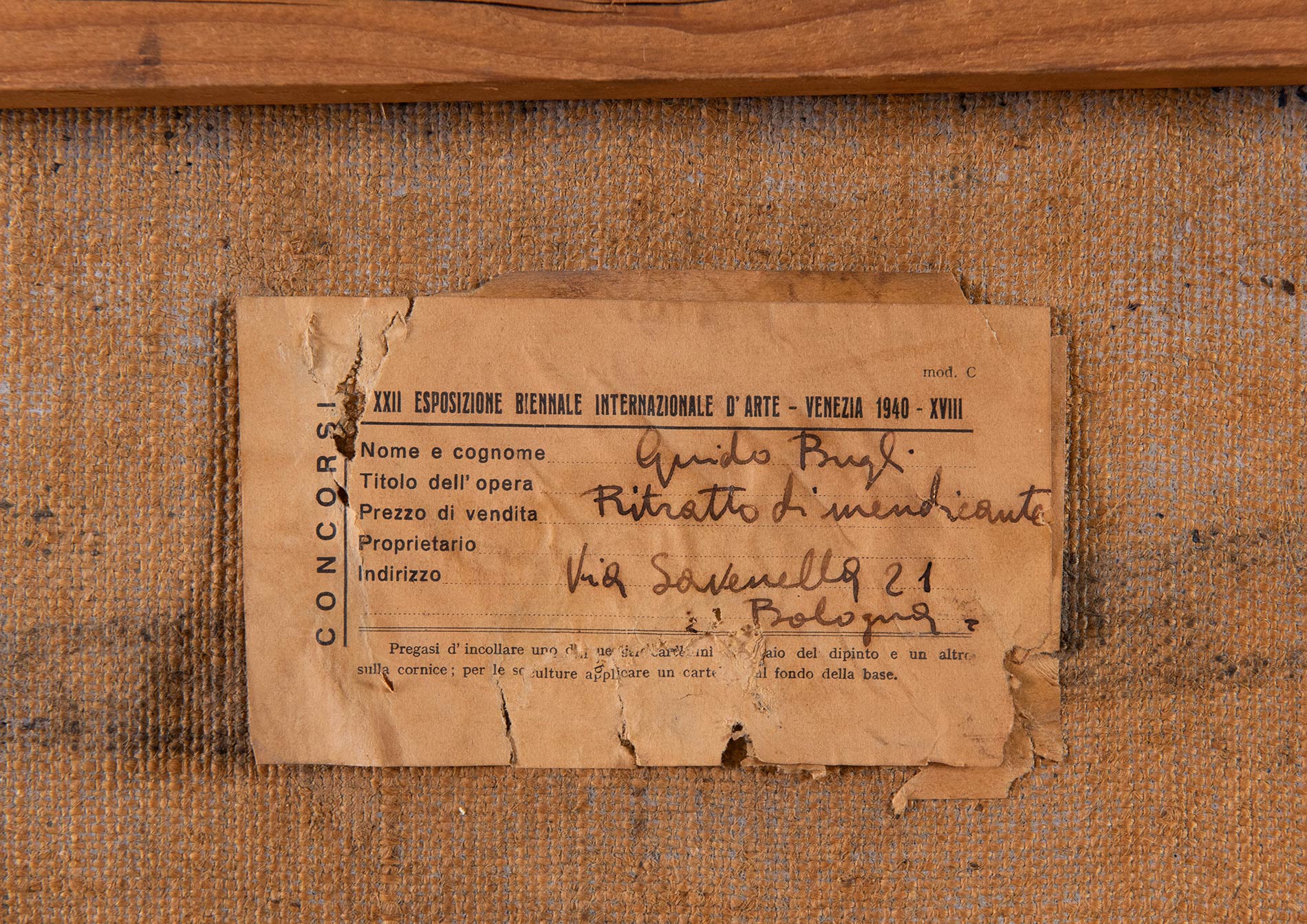 GUIDO BUGLI (Bologna 1912 - Bologna 2003). 'Ritratto di mendicante', fine anni '30 / primi anni '40. Olio su tela. H. Cm 130x94,5. Opera firmata in alto a sinistra 'G. Bugli'. Al retro reca etichetta 'Esposizione Biennale Internazionale d'Arte Venezia 1940'.