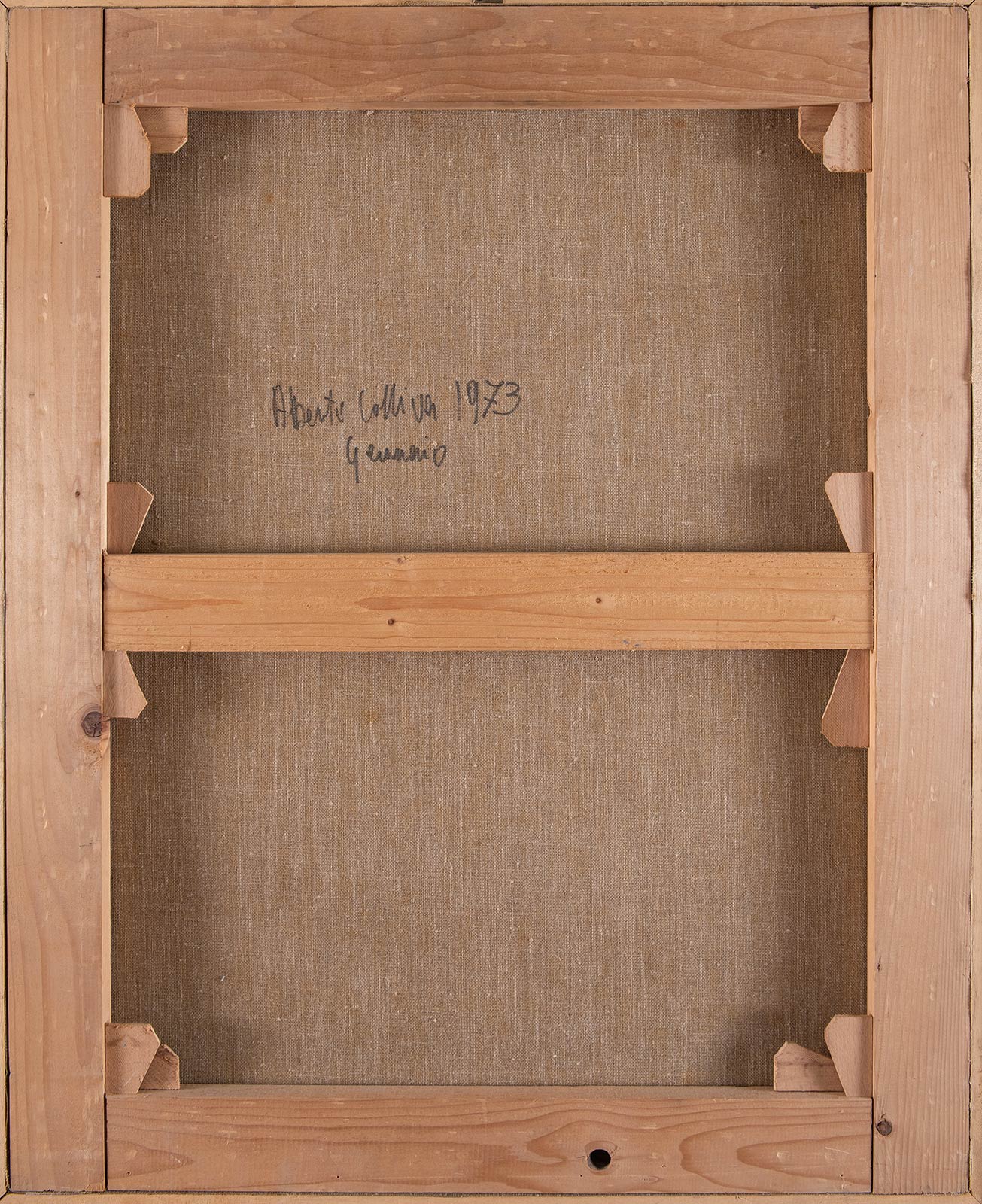 ALBERTO COLLIVA. 'Gennaio', 1973. Olio su tela. H. Cm 80x65. Opera firmata, datata, intitolata al retro 'Alberto Colliva, 'Gennaio 1973''.