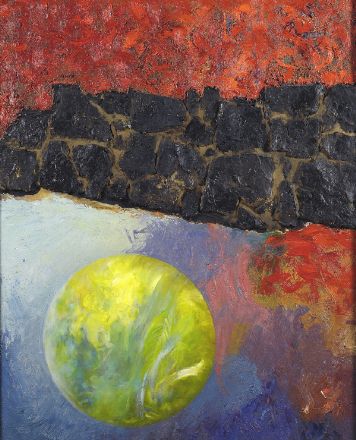 Fausto de Marinis (Harar, 1938) Lo demas era muerte y solo muerte (omaggio a Lorca) Olio e catrame su compensato, cm. 120x105 Sul verso: firma, titolo; etichetta dell'autore; etichetta Artefiera, Bologna, 1994