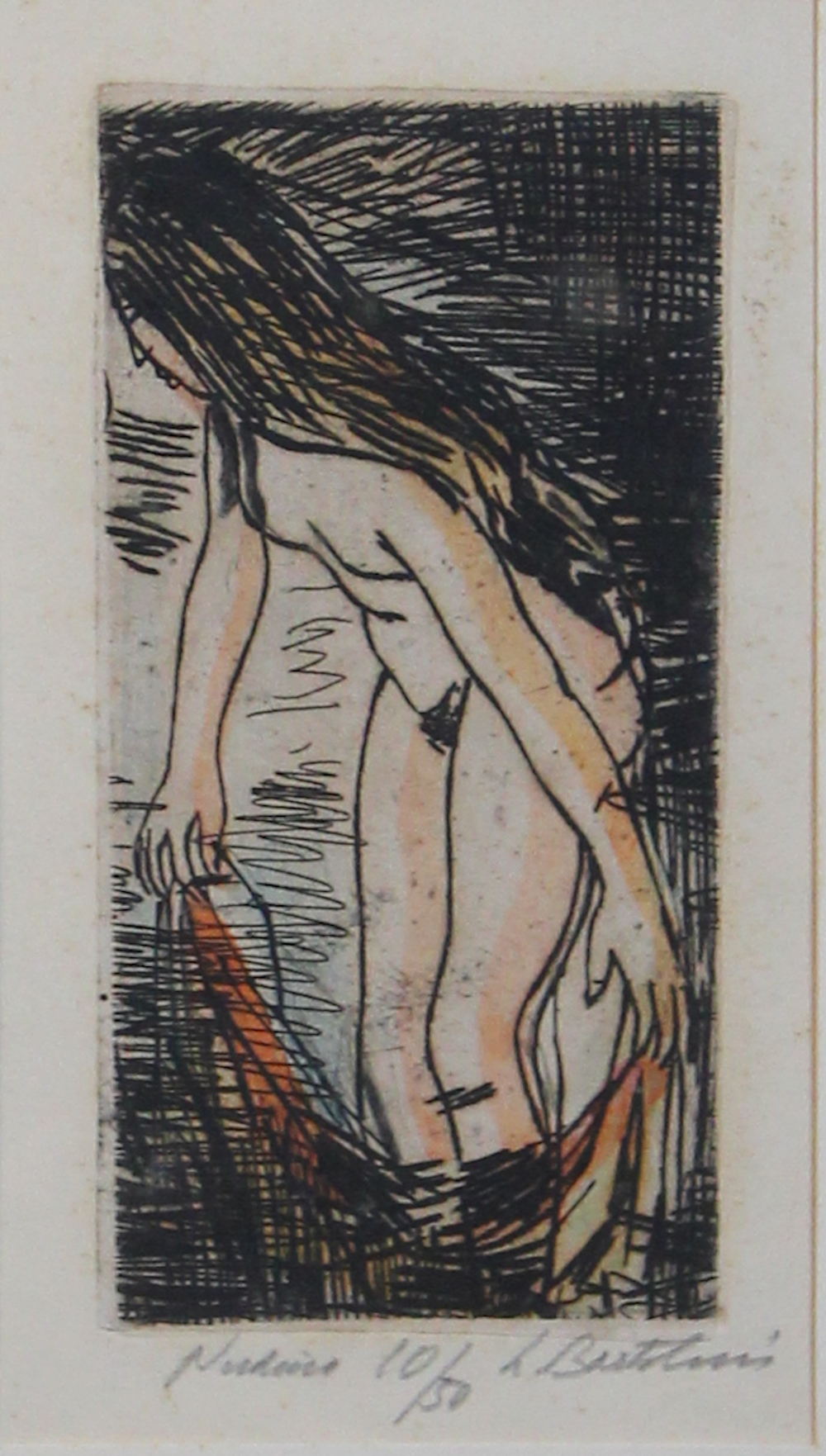 BARTOLINI LUIGI Nudino, Acquaforte e acquarello