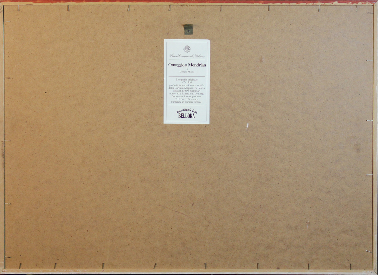 MILANI GIORGIO Omaggio a Mondrian, Litografia originale a 7 colori prodotta su carta ruvida Corona della cartiera Magnani di Pescia, tirata in 300 Esmplari numerati e firmati dall'autore
