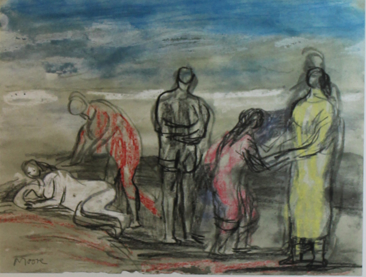 MOORE HENRY Una figura sdraiata e quattro figure in piedi