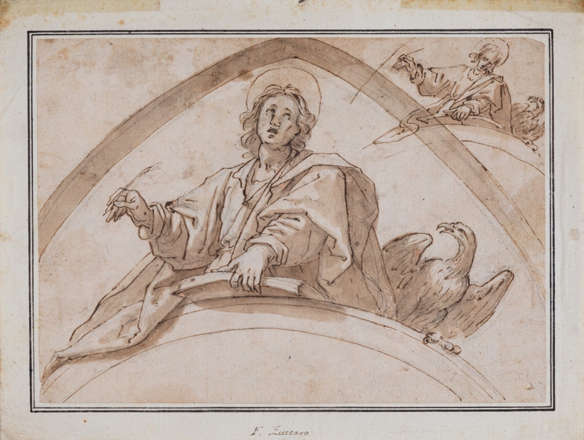 Scuola dell'Italia centrale, secolo XVII - Studio per San Giovanni Evangelista, entro lunetta