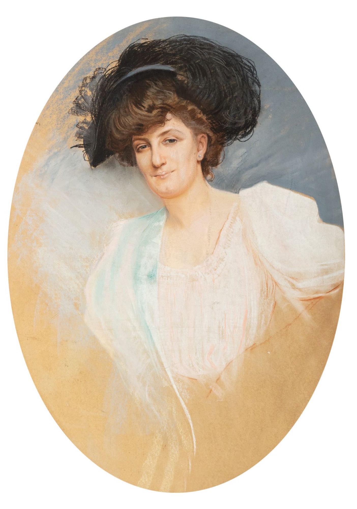 Lot 148 | Scuola italiana, fine secolo XIX - Ritratto di gentildonna con cappello piumato