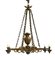 Lampadario a sei fiamme in bronzo cesellato, ottone e rame (h cm 100) (difetti)
