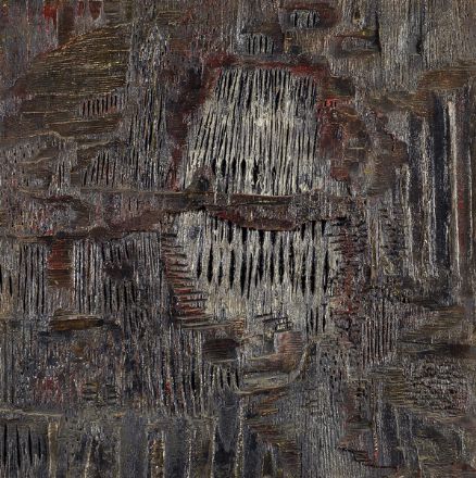 Agenore Fabbri (Barba, 1911 - Savona, 1998) Senza titolo, 1961 Tavola in legno intagliato e dipinto, cm. 50x50 Firma e data sul verso.