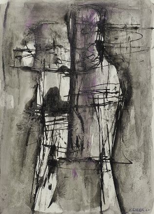 Agenore Fabbri (Barba, 1911 - Savona, 1998) Personaggio, 1960 Tecnica mista su cartoncino, cm. 34x25 Firma e data in basso a destra. Sul verso: firma, data e titolo; sul cartone di chiusura: etichetta Arte del XX Secolo, Montecatini.