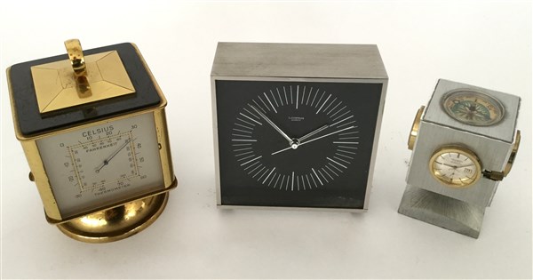 LUPING, LORENTZ e HEDY WATCH. Lotto composto da tre orologi da scrivania, di cui due con stazione barometrica, misure e fatture diverse. (difetti)