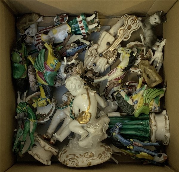 Manifatture diverse, lotto composto da numerosi animali e sculture in ceramica e porcellana (gravi difetti e rotture)