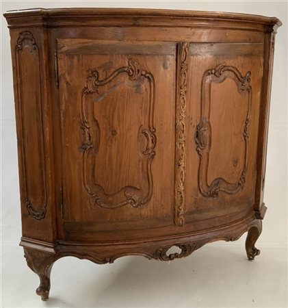 Angoliera in abete a due ante scolpite a volute. Fascia e piedi sagomati. Francia, secolo XVIII (cm 100x96x70) (difetti e restauri)