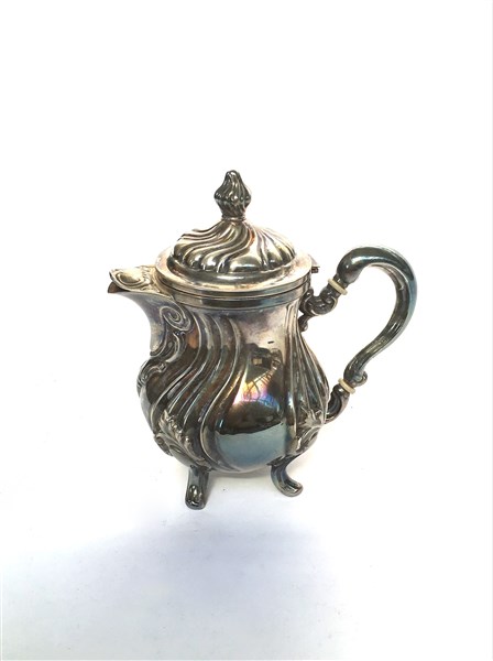 Caffettiera in argento con corpo decorato a scanalature.Titolo 800 (gr. 570)