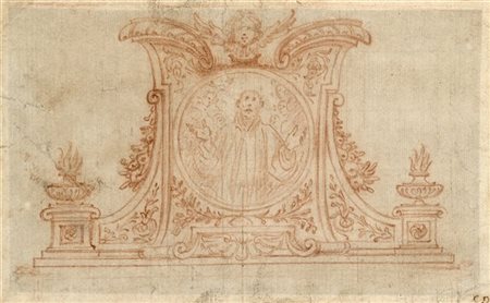 Scuola del secolo XVII Studio per cimasa con santo Matita rossa su carta mm 14