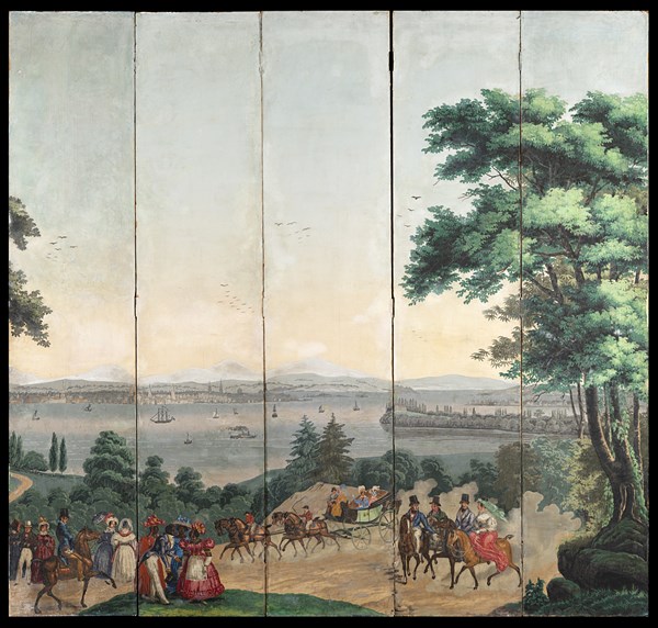Zuber & Cie (attr.) Francia, secolo XIX "Veduta del Nord America" paravento da