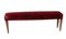 Panchetto in legno con gambe rastremate, seduta in tessuto rosso (cm 139x46x32) (difetti e mancanze)