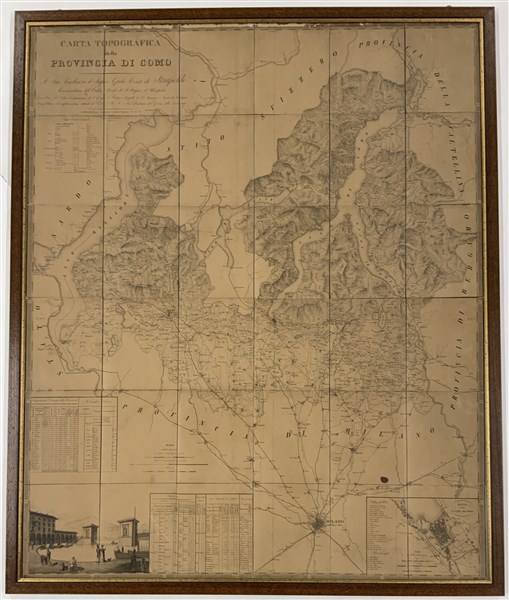Lot 408 | Carta topografica della provincia di Como del Sec. XIX con pianta della città e