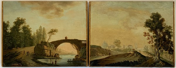 Ignoto del secolo XIX " Paesaggi con viandanti" coppia di dipinti ad olio su te