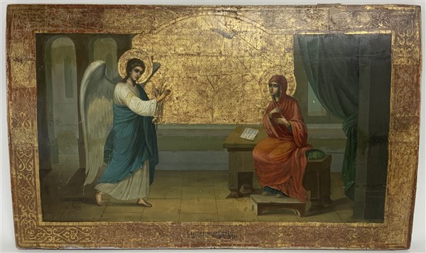 Scuola russa, secolo XIX " Annunciazione" Icona ad olio su tavola (cm 70x40) (d
