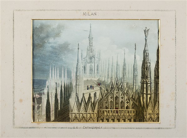 Etching and aquatint with hand-retouches on paper applied on passepartout, 153x191 mm.