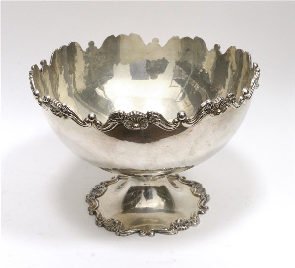 Centrotavola in argento a corpo liscio con bordi sagomati e decorati a fiori e