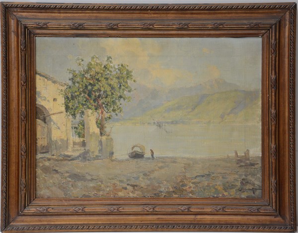 Ernesto Rigamonti "Scorcio di lago" olio su tela (50x70) firmato in basso a dest
