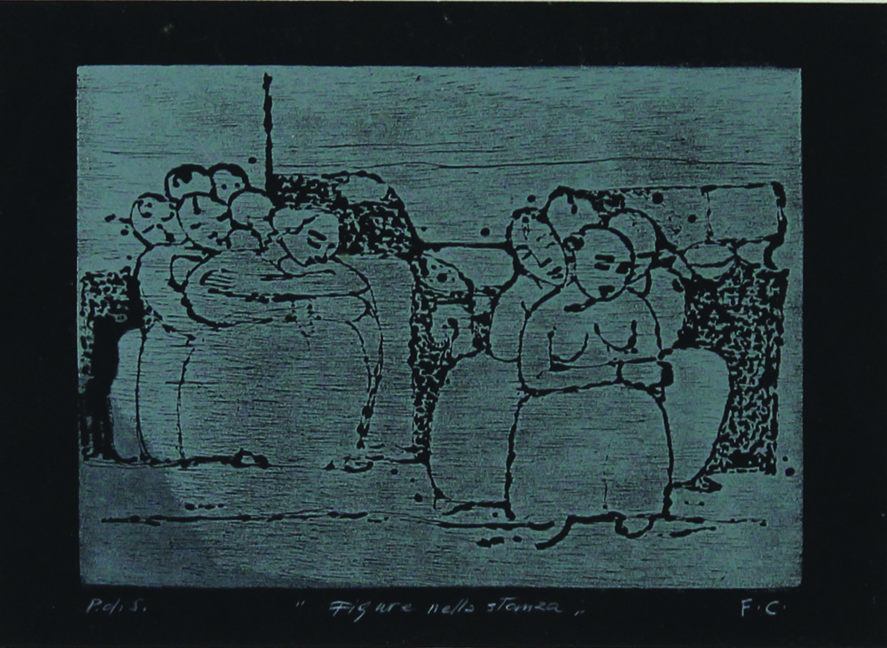 Casorati Felice Figura nella stanza xilografia cm 21,5x26 Cavallo con figura,...