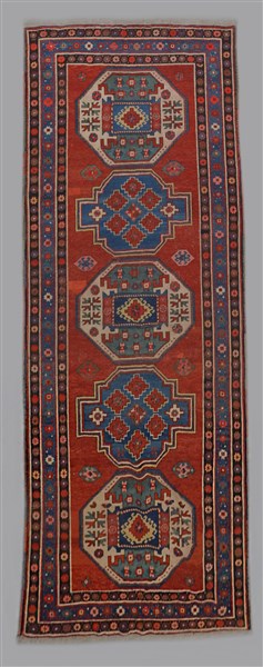 Tappeto Kazak, Caucaso, fine secolo XIX. Decoro con cinque medaglioni policromi
