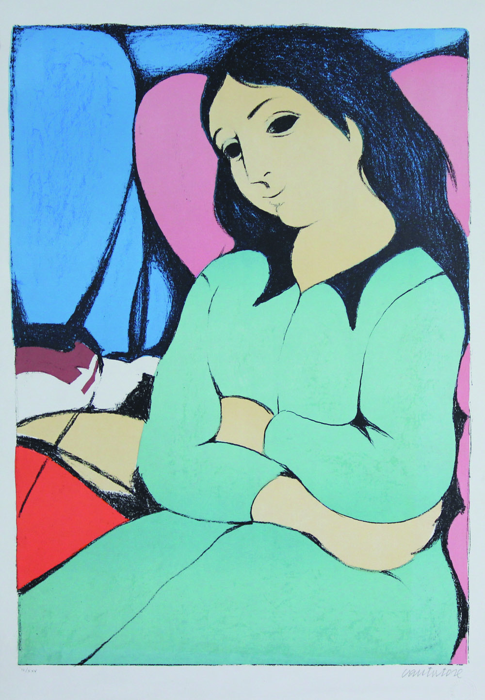 Cantatore Domenico due serigrafie su carta: Figura di donna es.IV/XXX cm 70x49 firmata in basso a destra, timbro a secco Bandini Editore Milano Senza titolo cm. 59x78 es.139/165 firmata in basso a destra, timbro a secco Bandini Editore Milano
