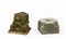 Lotto composto da un basamento di colonna in marmo scolpito con teste belluine