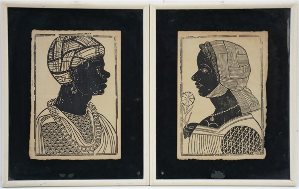 Coppia di xilografie del XIX secolo raffiguranti profili di Mori (cm 41x28 circa) in cornici (difetti)