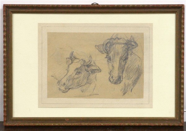 Lot 777 | Ignoto del secolo XIX "Studio per bovini" matita nera su carta applicata su car