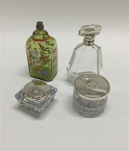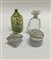 Lotto composto da due contenitori con tappi in argento e due bottiglie, una dec