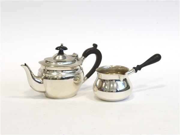 Lotto composto da un versatoio e una caffettiera in argento a corpo liscio (g lordi 420 ca.) (lievi difetti)