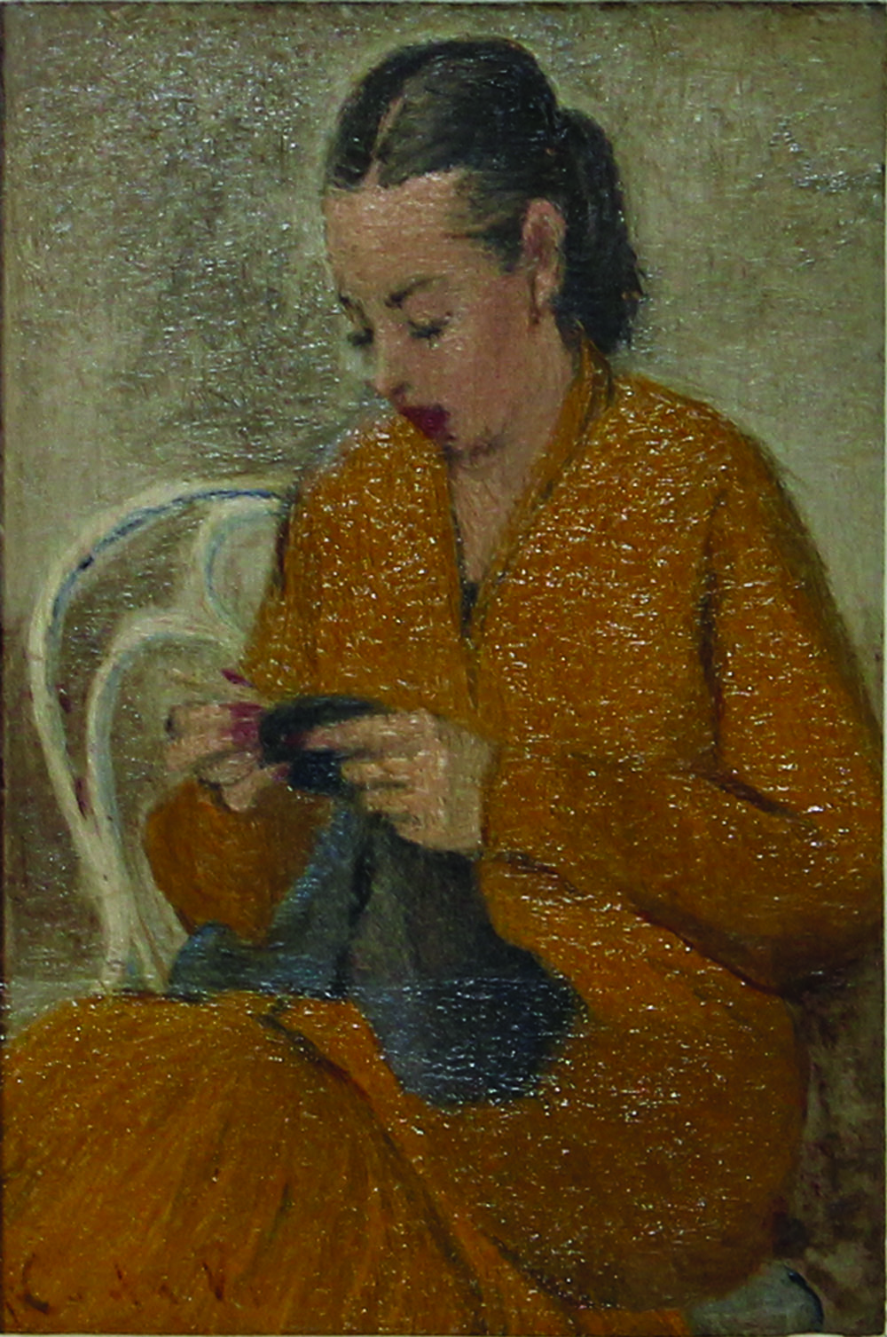 Lot 37 | Calderara Antonio Donna che lavora all'uncinetto, 1952 olio su tavola cm...