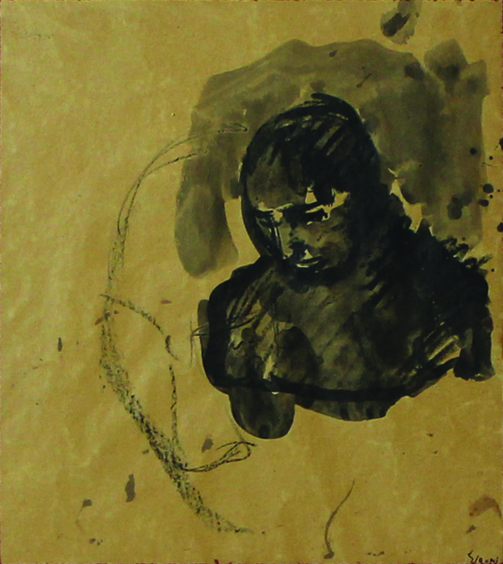 Sironi Mario Figura, fine anni '20 tecnica mista (inchiostro acquarellato e gesso nero su carta) cm 25x22,5 firmato in basso a destra, autentica su foto di Francesco Meloni