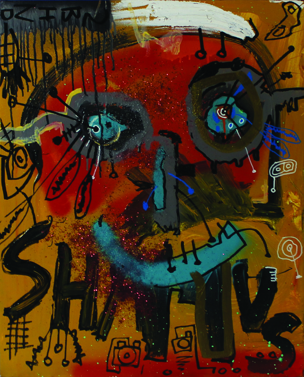 Kostabi Paul Al's Friends, 2008 tecnica mista su tela cm 76x61 firmata, intitolata e datata al retro, autentica Follin Gallery su foto, pubblicata su catalogo della mostra Paul Kostabi tenutasi a Corbetta (Mi) dal 10/05 al 2/06/2008