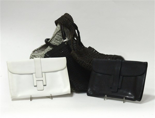 Lotto composto da una borsa con lavorazione tipo canneté, due borse estive in r
